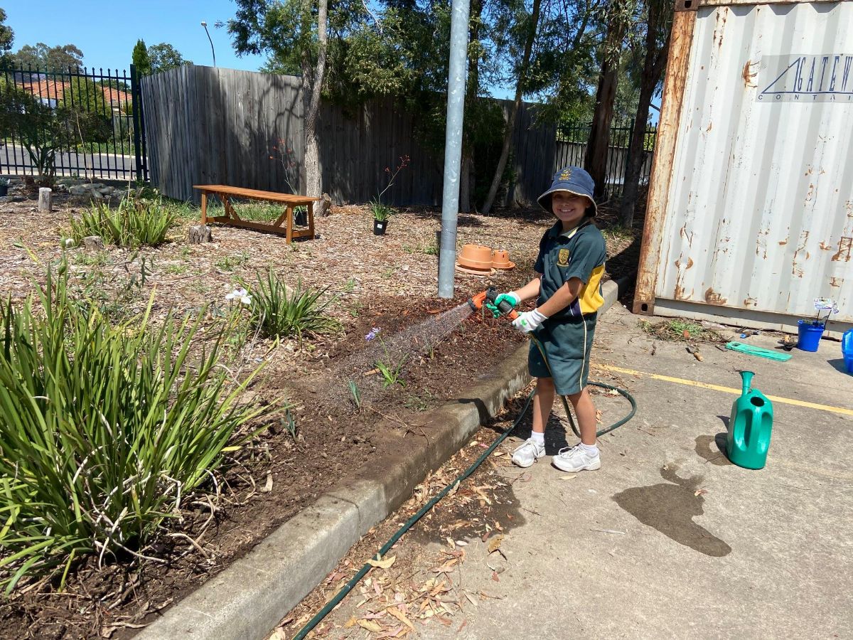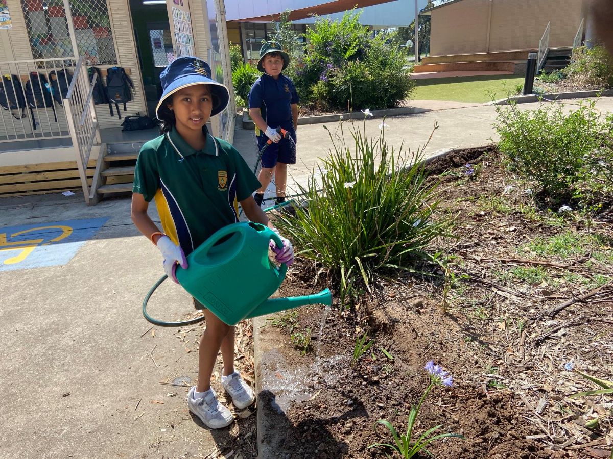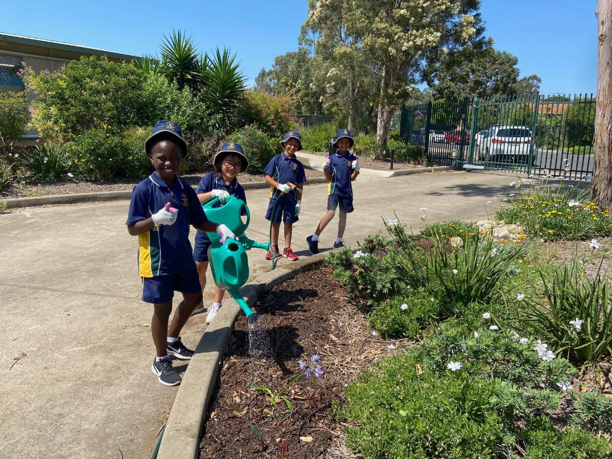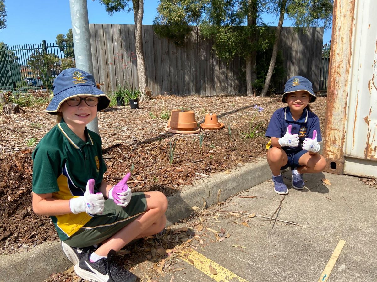 With the help and hard yakka of Mrs Attard and Mr Saad, the keen young gardeners got to work digging, separating, positioning and planting. Students chose beautiful “Stars of Bethlehem” or agapanthus flowers which are currently thriving. Native plants also feature for their hardiness, including “Kangaroo Paw”. In 2021, students have plans to ‘branch out’ into more edible plants.